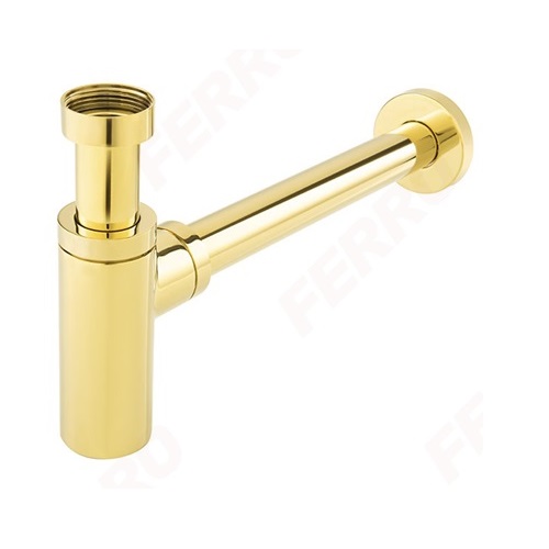 The Rotondo Gold Bottle Siphon is a premium decorative bottle trap designed for high-end washbasin installations. Featuring a luxurious polished gold finish and a perfectly rounded “rotondo” cylindrical design, it enhances the aesthetic of modern and classic bathrooms alike. Built from high-quality brass with corrosion-resistant coating, it ensures long-lasting durability, easy maintenance, and reliable wastewater drainage.