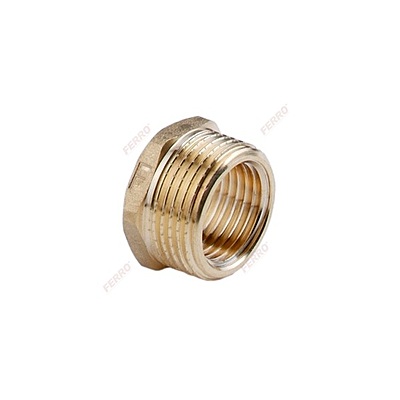 The FERRO Brass Reduction Bush 1 1/4" × 1" is a high-quality reducing fitting designed for transitioning between different thread sizes in plumbing, heating, and HVAC systems. Manufactured from premium forged brass, it ensures reliable sealing, excellent corrosion resistance, and long-term durability. Ideal for pump groups, manifolds, boilers, and general hydraulic installations requiring secure size adaptation.