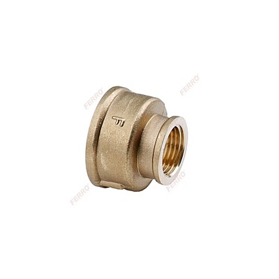 The FERRO Brass Reduction Socket 1" × 1/2" is a durable reducing coupling used to connect fittings or pipes of different diameters in plumbing, heating, and HVAC systems. Manufactured from high-quality forged brass, it provides excellent corrosion resistance, strong mechanical durability, and precise BSP female threading for a secure, leak-free connection. Ideal for manifolds, boiler circuits, pump groups, and general hydraulic applications.