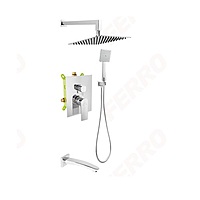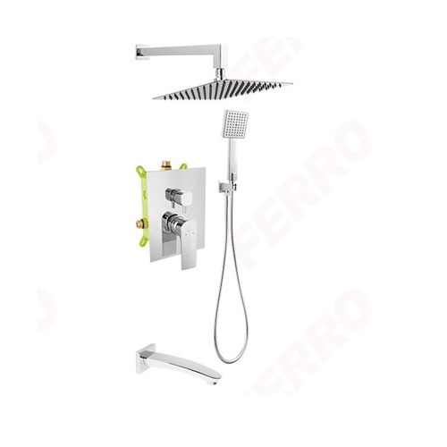 The BAQ7P3BOX-SET1-S is a premium 3-function built-in shower set designed for multi-outlet concealed installations. Equipped with the BAQ7P3BOX 3-way mixer box, a chrome rainfall shower head, hand shower kit, and additional outlet for accessories (e.g., body jets or spout), this set provides full flexibility and modern aesthetics. Ideal for high-end residential bathrooms, hotels, and renovation projects requiring performance, durability, and a clean minimalist look.