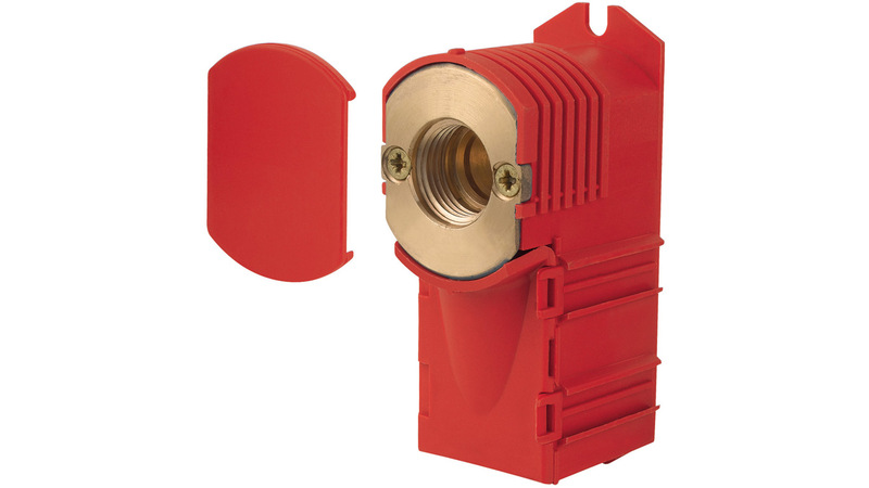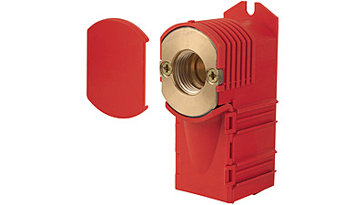 The Carlo Poletti A42602AR sanitary box is a compact, professional installation unit equipped with a 1/2" F × 1/2" elbow and a red identification cover. Designed for concealed plumbing applications, it ensures reliable water connections, secure wall integration, and fast, clean installation for residential and commercial bathroom systems.