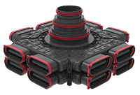 The ventilation distribution box (8×F) – commonly found in HEATPEX ARIA CONNECT systems – is an 8-port air distribution manifold used in mechanical ventilation with heat recovery (MVHR/ERV) installations. It allows connection of eight branch ducts (e.g., Ø 90 mm) to a central ventilation unit, distributing supply or exhaust air throughout a building with high airtightness and tool-free OneClick® connections.