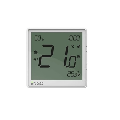 The ENGO EONE-230W is a wired digital room thermostat designed for precise temperature regulation in heating systems. Operating on 230V and featuring a clean white finish, it offers stable control, easy installation, and reliable performance. Suitable for underfloor heating, radiators, and general HVAC applications in residential and commercial environments.