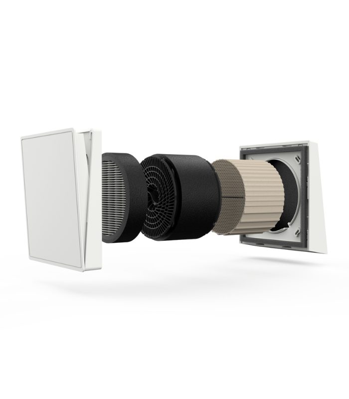 The GetAir SmartFan Pro Wired Full Set (GTA31012060) is a complete wired decentralized ventilation solution designed for high-efficiency air exchange with heat recovery. This full package includes the SmartFan Pro wired fan unit, ceramic heat exchanger, interior and exterior ASA covers in white (RAL 9016), and a Ø160 mm mounting tube with plaster covers. Engineered for silent operation, robust wired reliability, and outstanding thermal efficiency, it is ideal for new residential buildings and renovation projects requiring a fully hard-wired ventilation setup.