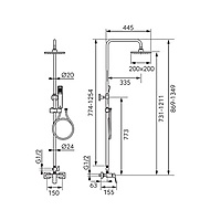 RAINFALL SHOWER SYSTEM AND MIXER BLACK-VITTO VERDELINE