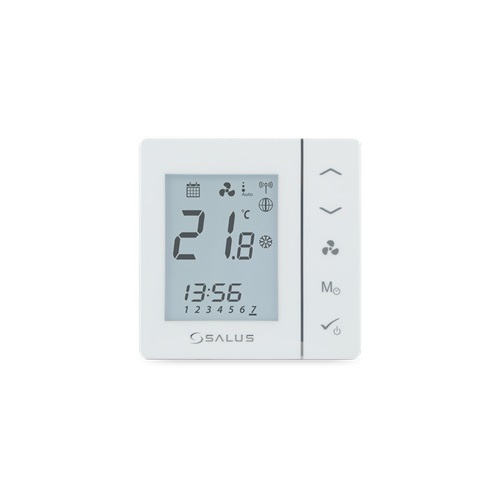The SALUS FC600 is a professional fan-coil thermostat designed for precise control of 2-pipe and 4-pipe HVAC systems. With a clear digital display, manual fan-speed selection, heating/cooling mode switching, and reliable temperature accuracy, it is ideal for hotels, offices, apartments, and commercial buildings. Available in 230V or 24V versions depending on system requirements.