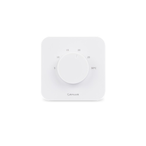 The SALUS HTR230 is a wired 230 V dial-type electronic room thermostat designed for under-floor heating, surface heating/cooling, and general HVAC zone control. With a simple turn-dial interface, silent switching (via TRIAC/PWM), frost-protection, and a night-setback function, it provides a cost-effective, reliable control solution for installations requiring 230 V operation.