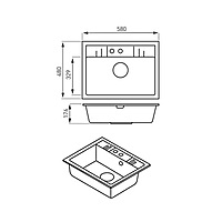 SINGLE KITCHEN SINK 58X48 CM, GRAPHITE SHINE-MEZZO II