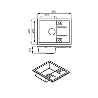 SINGLE KITCHEN SINK 58X48 CM GRAPHITE SHINE-MEZZO II