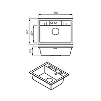 SINGLE KITCHEN SINK 58X48 CM, GREY-MEZZO II