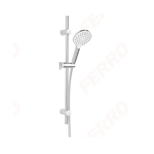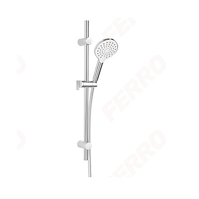 High-quality Ferro MULO N343-LA sliding shower set in chrome finish, designed for smooth height adjustment and long-lasting performance. Includes a durable hand shower, adjustable sliding rail, and flexible stainless steel hose. Ideal for residential and commercial bathrooms requiring a reliable, modern shower solution.