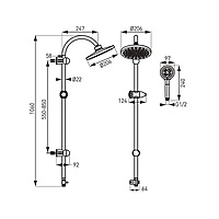 SLIDING SHOWER SET WITH RAINFALL BLACK- RONDO