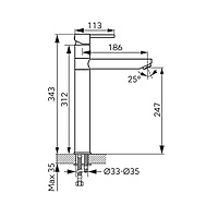 | Height / Jet height | Approx. height 343 mm; water outlet height ~247 mm; spout reach ~186 mm (Ferro) |