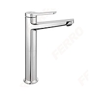The Ferro Stratos BSC2L is a tall, single-lever mixer designed for above-counter (counter-mounted) wash-basins. It features a ceramic cartridge for long-term reliability, a standard M24×1 aerator/flow regulator, flexible supply hoses with G3/8 – M10×1 connections, and a polished chrome finish. Ideal for modern bathroom installations with elevated mountings or countertop basins.