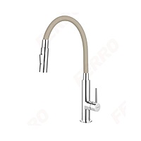 FERRO BZA43P standing kitchen mixer from the Zumba Slim 2F series with a sand (beige) flexible spout and two-function spray/stream selector.