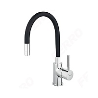 FERRO BZA4BLP standing sink mixer from the Zumba series with a chrome body and black flexible spout.