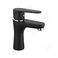 he Ferro Algeo Black BAG2BL is a single-lever, deck-mounted standing wash-basin mixer in a matte black “Black Concept” finish. It features a ceramic cartridge, flow‐regulator/aerator M24 × 1, flexible connection hoses (G 3/8 – M10 × 1), and one-hole mounting. Ideal for modern black-accent bathrooms.