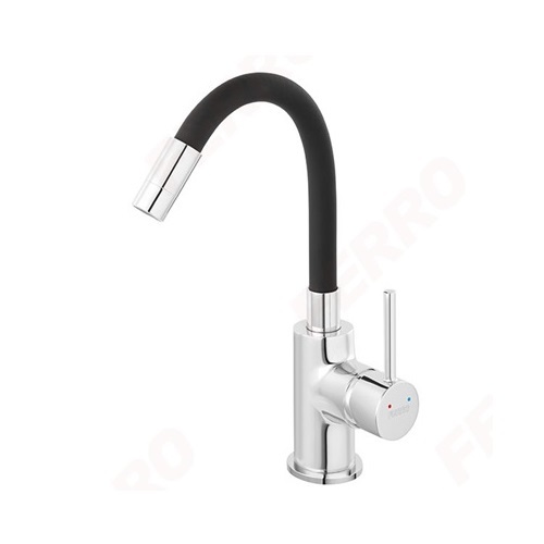 The Ferro Fiesta BFI2FB is a deck-mounted, single-hole standing wash-basin mixer in polished chrome finish. What sets it apart is its flexible spout, allowing free shaping of the spout’s path for added convenience. It uses a ceramic cartridge, includes a flow regulator sized M22×1, and flexible connection hoses G3/8 – M10×1. Ideal for modern wash-basin installations where a flexible spout is desired.